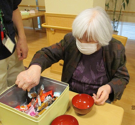 本日は世間でいう「バレンタイン」です。デイサービスゆうけあ相河では、ご利用の皆様に「愛」を込め「チョコすくいゲーム」を催しました。すくったチョコは持ち帰り、おうちで美味しく食べて頂けましたでしょうか?