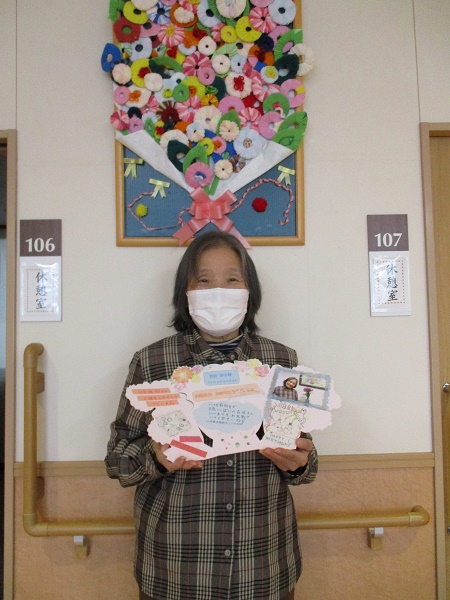 3月生まれの方のお誕生会をしました。皆様からの歌のプレゼントに照れていらっしゃいました。